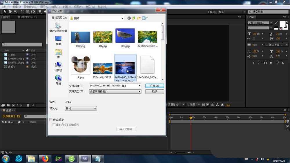 1、首先就是素材的導入,這個導入的方法很簡單,不再贅述,將素材庫的素材拉至合成里面的時間線上