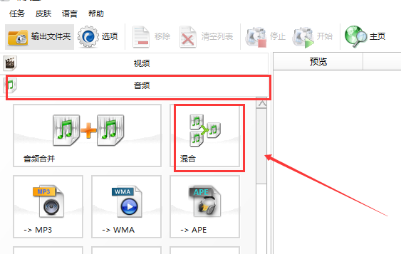 1、打開(kāi)格式工廠,選擇音頻中的混合
