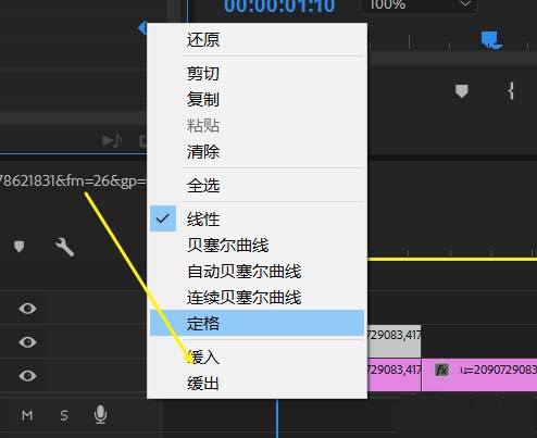 8、找到第一幀關鍵幀,右鍵選擇緩入,第二幀緩出