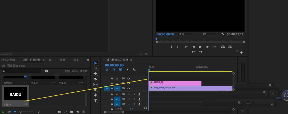 5、把弄好的字幕繼續(xù)拉到黑邊上面