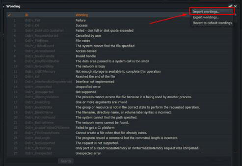 3、繼續(xù)點(diǎn)擊彈出Wording界面的右上角齒輪,接著選擇“Import Wordings”選項(xiàng),如下圖所示: