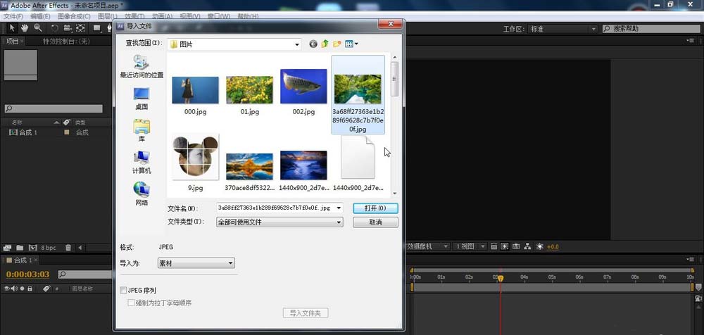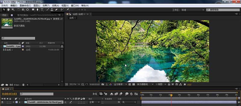 1、首先就是素材的導入,這個導入的方法很簡單,不再贅述,將素材庫的素材拉至合成里面的時間線上