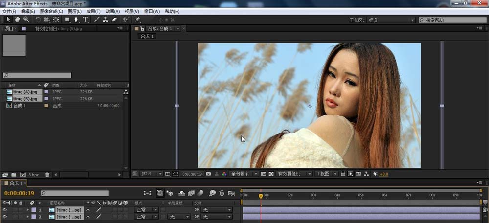 1、首先就是素材的導入,這個導入的方法很簡單,不再贅述,將素材庫的素材拉至合成里面的時間線上