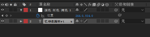 1、首先,新建一個合成,使用文字工具輸入一行文字內容,顏色取為紅色,調整文字內容的大小和位置到合適的狀態。