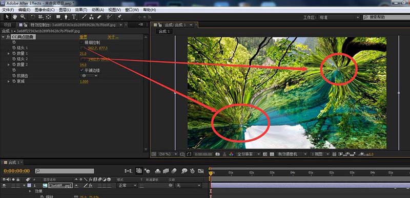 6、在右上角進行兩個扭曲點的位置關系調整,并且調整其“數量”,數量越大扭曲程度越大。