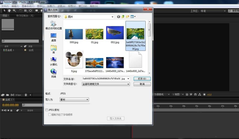 2、在左上角的素材庫中,進行素材的導入,這里的素材可以是圖片也可以是視頻。