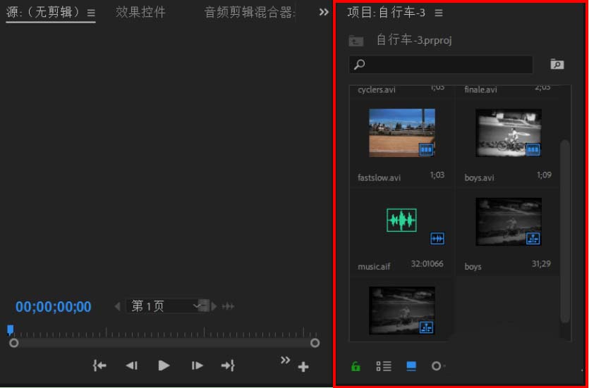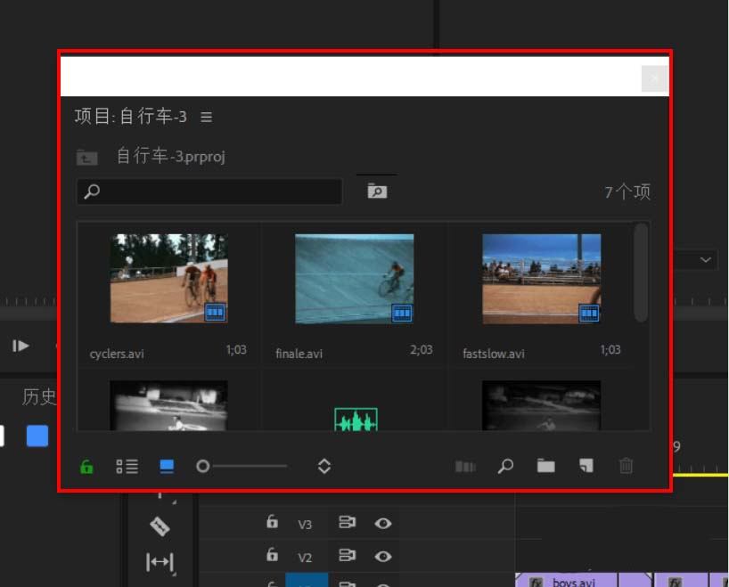 注意:此時(shí)“項(xiàng)目”(浮動(dòng)面板)是懸浮在其他面板之上。在剪輯的過程中,大家可以將面板放置到任何一個(gè)地方。