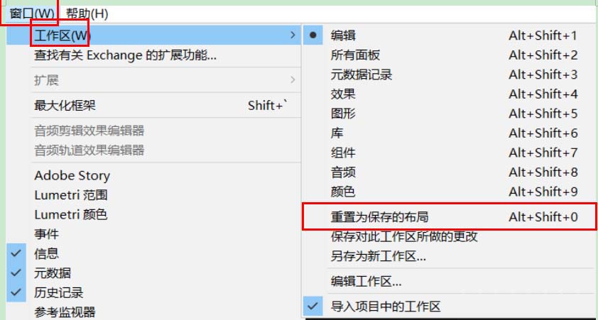 步驟:【窗口】-->【工作區(qū)】-->【重置為保存的布局】