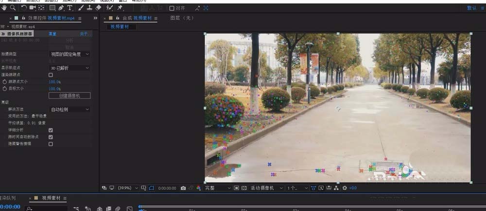 1、選中視頻素材右擊跟蹤攝像機(jī),AE會(huì)對(duì)視頻進(jìn)行自動(dòng)完成攝像機(jī)的反求運(yùn)算。