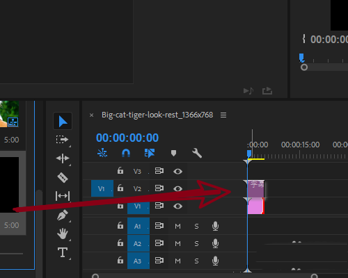 6、然后關閉字幕,將該字幕01拖拽到v2軌道,如圖