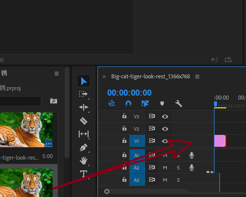 3、創建序列。將該素材拖拽到時間軸的v1軌道,如圖