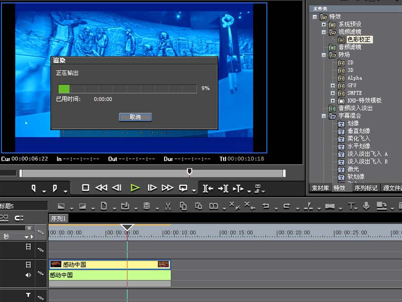 8、按f11鍵將文件渲染導出即可,這樣就設置了變色視頻效果。