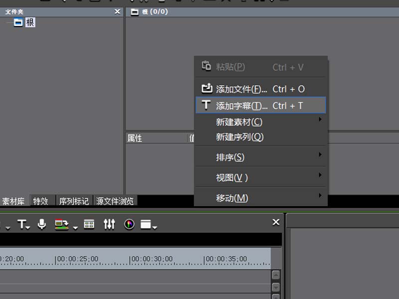 1、首先啟動edius6,接著進入主界面,右鍵單擊素材庫,從中選擇添加字幕選項。