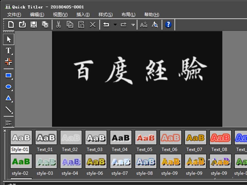 2、在quick titler對話框中,輸入文字內容,設置字體為田英章毛筆楷書,字號為300.