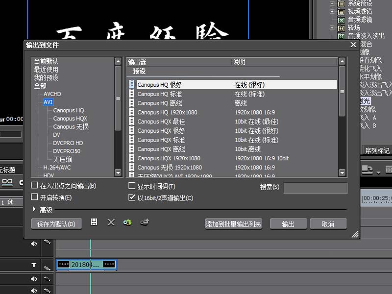 5、執行文件-輸出-輸出到文件命令,從彈出的對話框選擇avi格式。