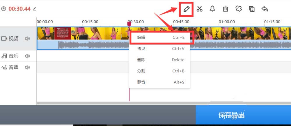 3、右鍵點擊時間軌道彈出選擇編輯項,或者直接點擊 筆頭樣編輯圖標