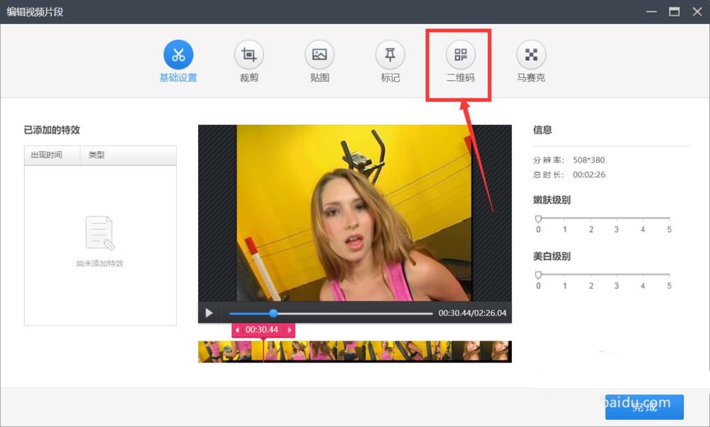 4、進入編輯頁面,點擊上方二維碼項,找到需要加二維碼的畫面