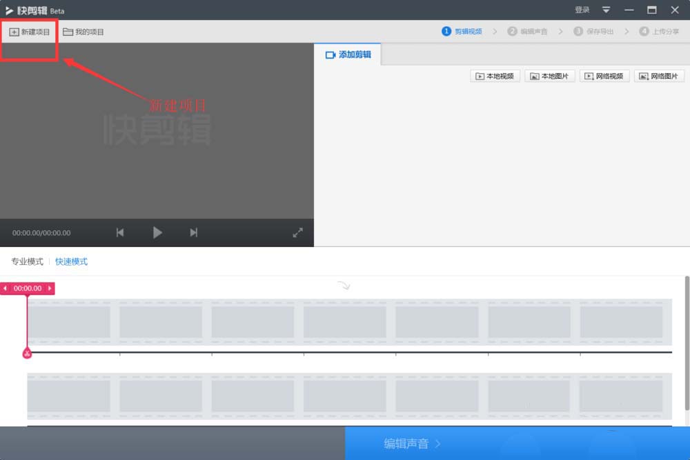1、首先,打開軟件,進入首頁點擊 新建項目,選擇專業模式新建一個項目
