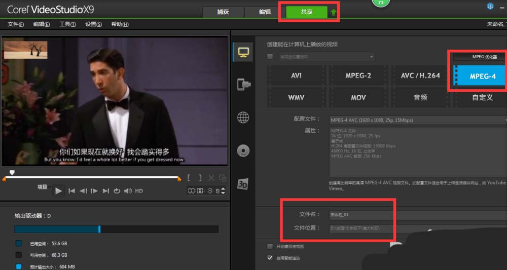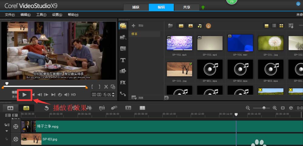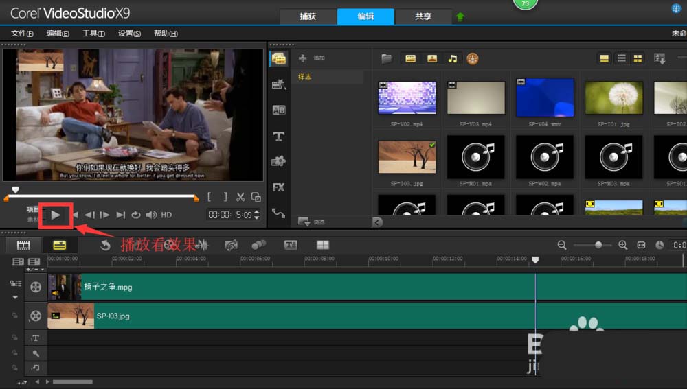 7、播放看看效果,再作適當調整。覺得效果不錯,點擊共享,MPEG-4,給文件命名并選好文件的位置,點擊開始,渲染成功就OK啦。