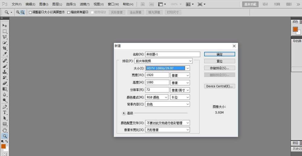1、首先就是在PS中的圖片尺寸,最好是和高清尺寸所匹配的