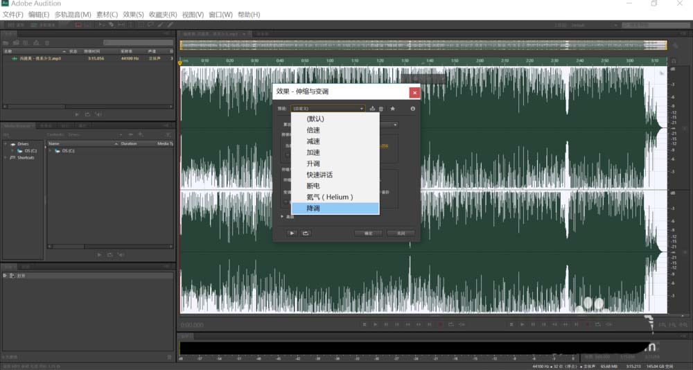 Audition時間和效果可以達到變調的效果,從而可以實現讓男生變成女聲,或者女聲變男聲,一般女聲是男聲升調4的音拍,下面我們就來看看詳細介紹。