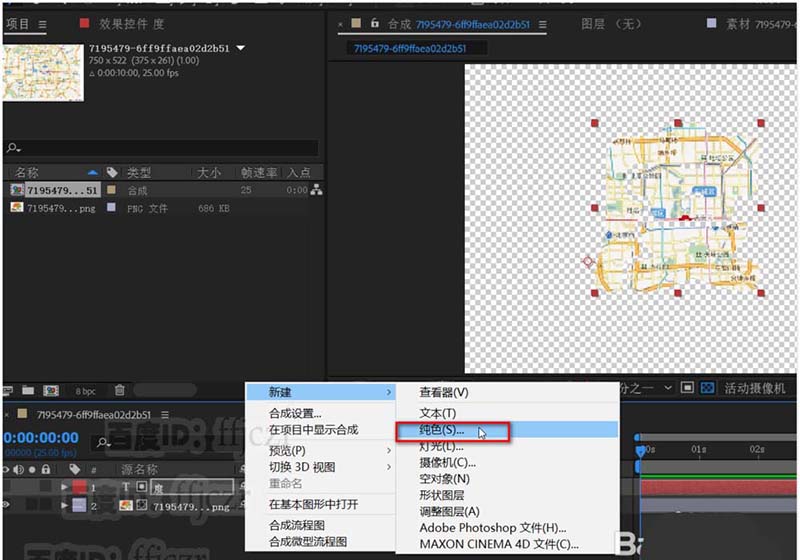 4、在合成層中新建一個純色層,并將該層移動到最下一層。