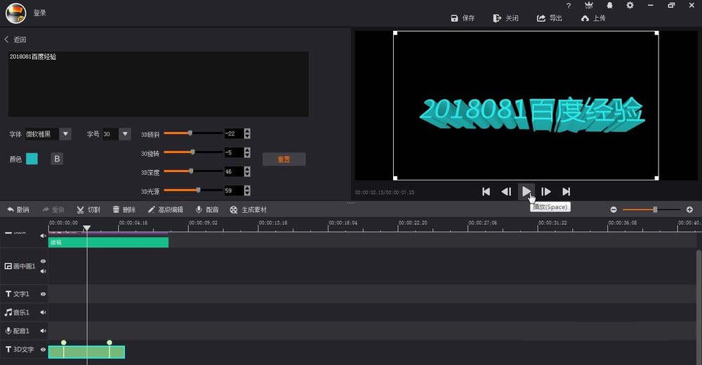 4、點擊這個文字模塊,進行文字的輸入以及各種參數的調整