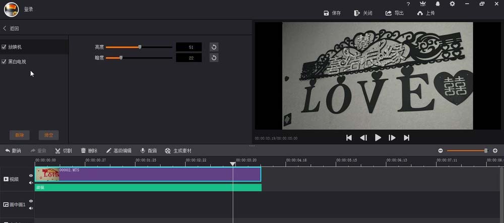 1、首先就是在濾鏡里面找到放映機(jī)效果