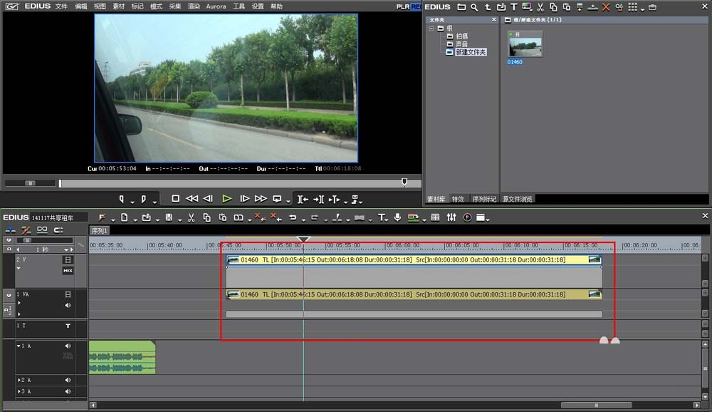 2、把視頻文件復制一次,并在其上的視頻軌道上黏貼,注意要做到:上下層首尾一致,不能錯位。