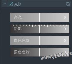 在此面板中,你可以通過調整高亮,陰影,白色色階和黑色色階來優化視頻中某些區域的光效。 選中 “光效”的選項,然后從左到右拖動滑塊進行調整。 負值會增加“高亮/陰影/白色色階/黑色階”的效果,反之亦然。