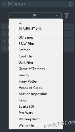 選擇3D LUT在下拉菜單中選擇一個模板如果你沒有找到你想要的模板,你可以將你從其他地方下載下來的3D LUT添加到神剪手中。在下拉選項中,選擇“導入新LUT文件”,選擇要添加的.CUBE, .3DL文件即可。