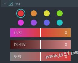 HSL是色相(Hue),飽和度(Saturation)和明度(luminance)的英文首字母大寫。它用于調整視頻中的各個顏色范圍。選中HSL的選項,從顏色面板中選擇顏色,將滑塊左右拖動,視頻中的相應顏色將被調整。