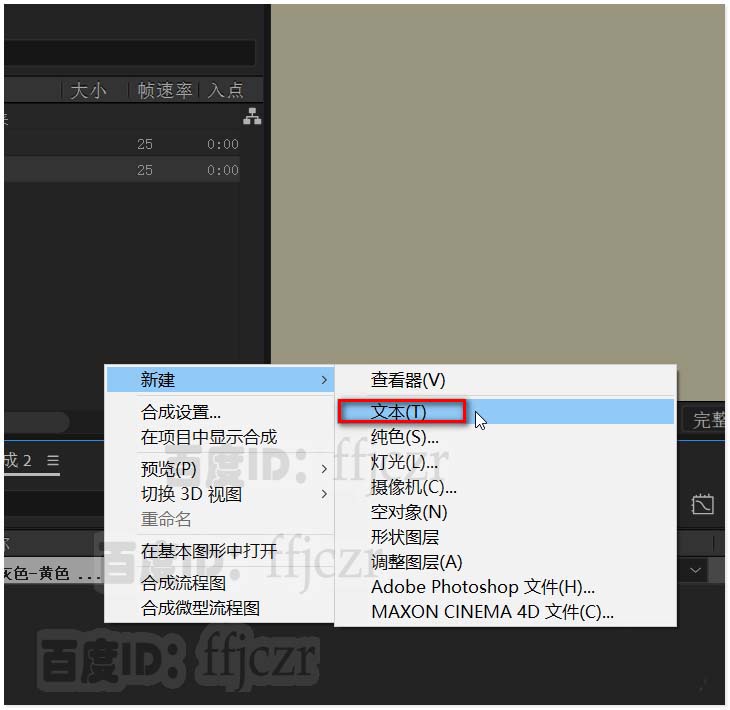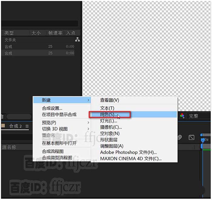 2、在合成層中添加一個純色層作為文字的背景層。顏色自定。