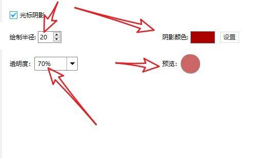 6、接下來(lái)再設(shè)置一下光標(biāo)陰影的半徑、顏色、透明度等數(shù)據(jù),達(dá)到自己滿(mǎn)意的效果就可以了。