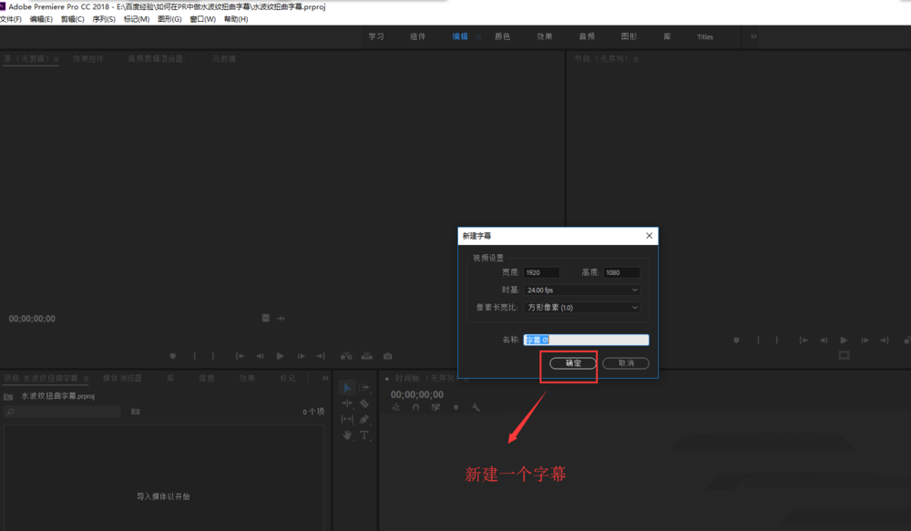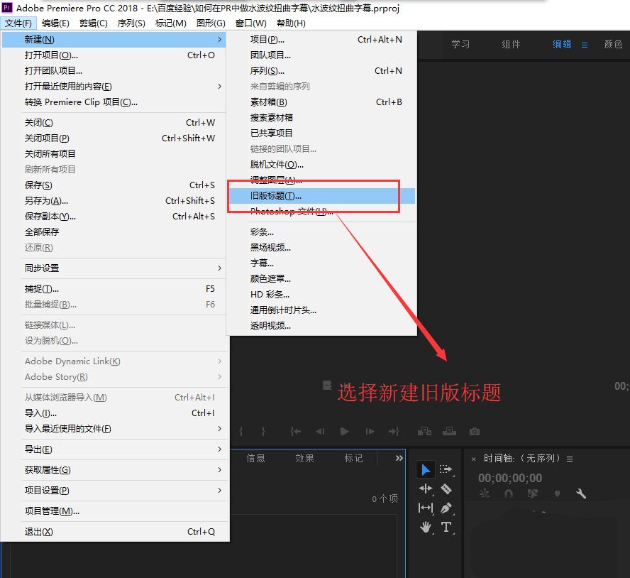 2、點(diǎn)開文件菜單,在文件菜單執(zhí)行新建中的舊版標(biāo)題命令,會(huì)彈出一個(gè)新建字幕的窗口,我們直接點(diǎn)擊確定創(chuàng)建一個(gè)字幕。