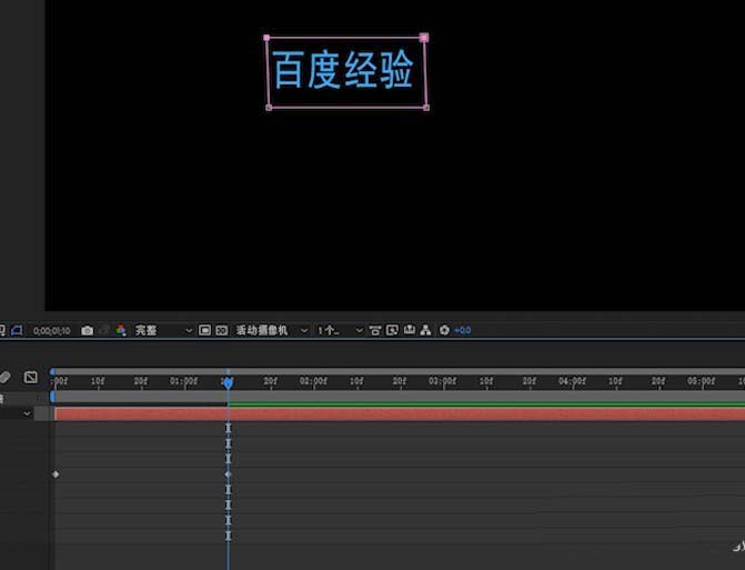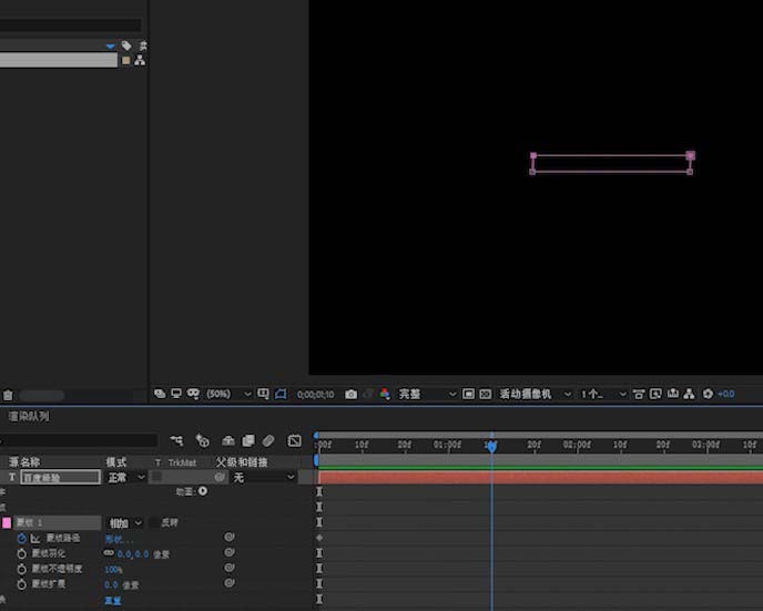 5、將時間指示器移動到10幀的位置,然后調整蒙版范圍,完全覆蓋文字內容。