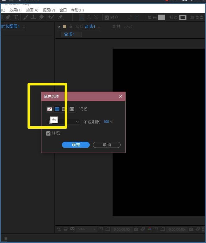 5、接著我們點(diǎn)擊頁(yè)面上方的填充兩個(gè)字,打開(kāi)更多功能,然后在打開(kāi)的選項(xiàng)卡上面,我們選擇無(wú)填充,點(diǎn)擊確定。