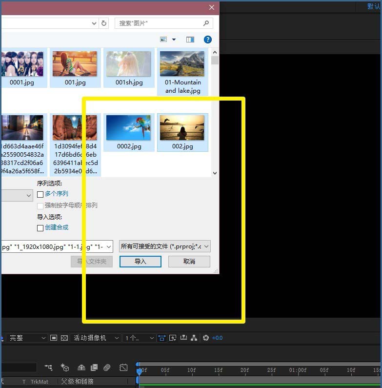 3、合成新建完成之后,在電腦文件夾中找到需要使用的素材,點(diǎn)擊打開(kāi)。