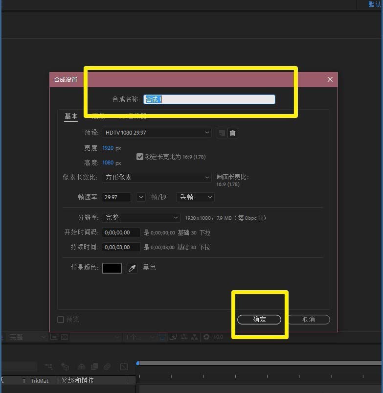 2、為我們新的合成起一個(gè)名稱,點(diǎn)擊確定。