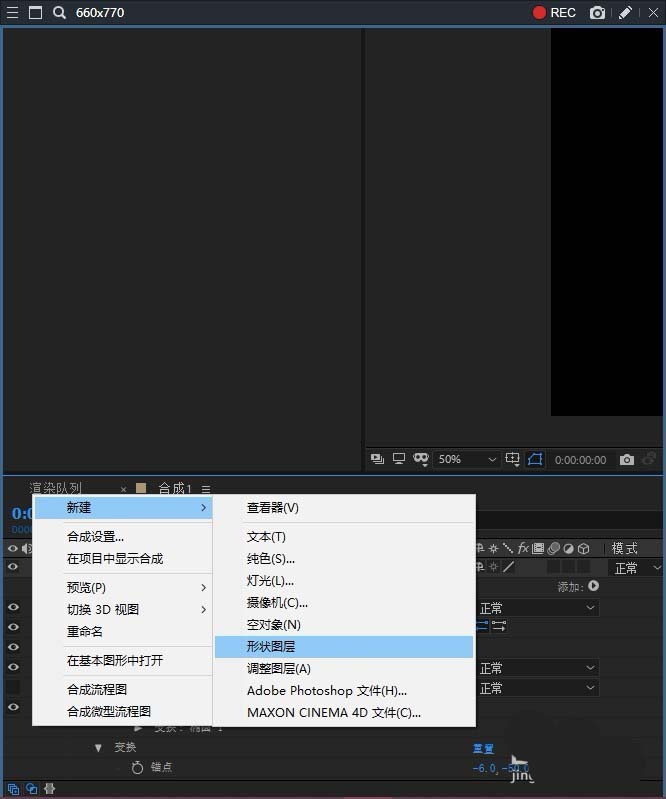 4、在頁(yè)面左下角的合成中新建一個(gè),圖形圖層。