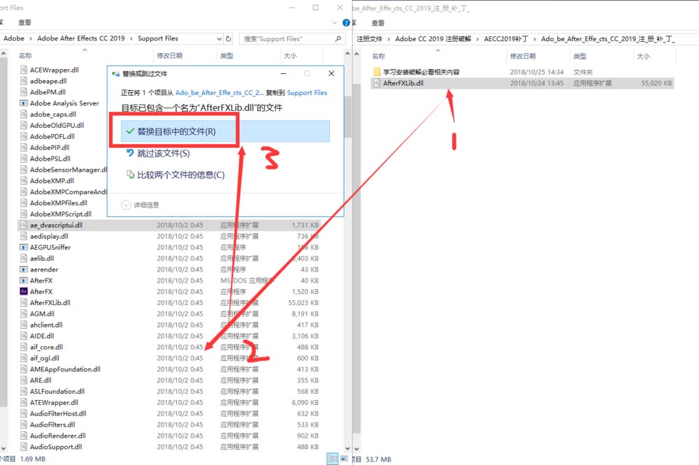 5、那么接下來我們就要進行替換補丁了,在安裝包里面,有一個“學習安裝必看文件”打開之后去下載注冊補丁,把補丁復制到AECC2019根目錄里面,切記是復制到根目錄, 不是拖進去,否則無效。
