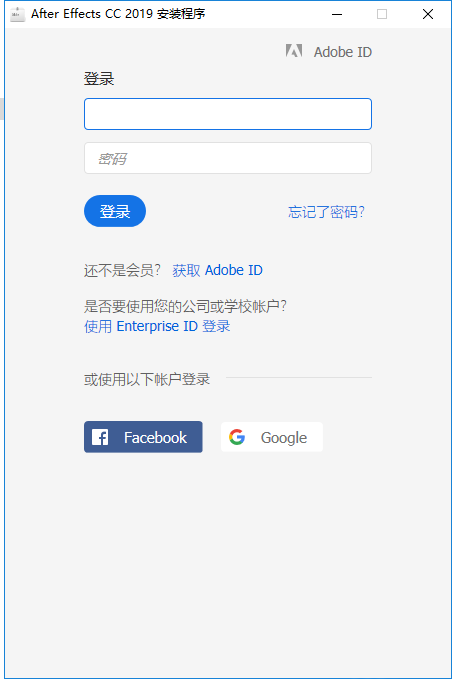 2、我們打開安裝包的文件,找到里面的set-up啟動程序,我們雙擊就開始進行安裝軟件,雙擊之后會進入安裝界面,如果第一次安裝的同學,一定是要登錄Adobe賬號的,有就登錄,沒有就點擊獲取AdobeID,進行注冊一個Adobe賬號。然后在登錄即可。