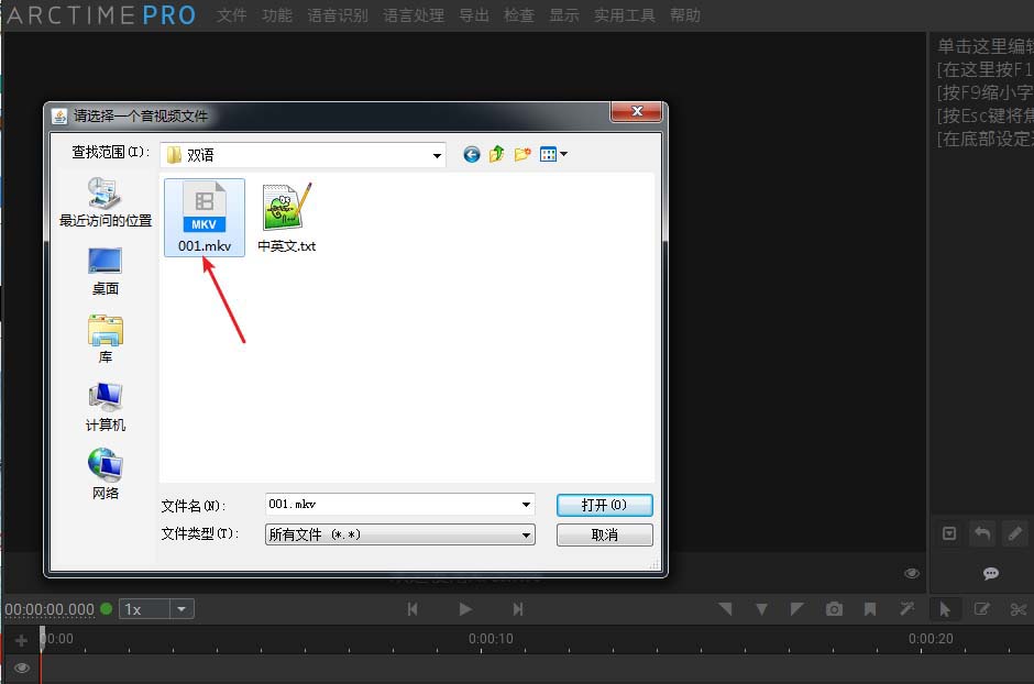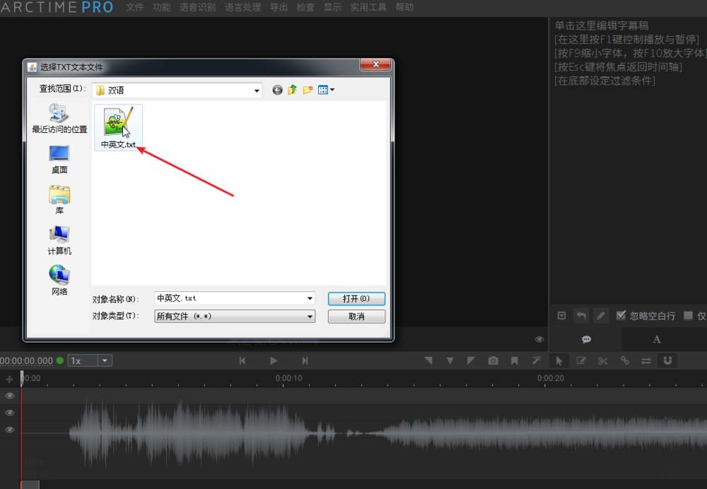 5、找到對(duì)應(yīng)的雙語(yǔ)字幕文稿,點(diǎn)擊“打開”。