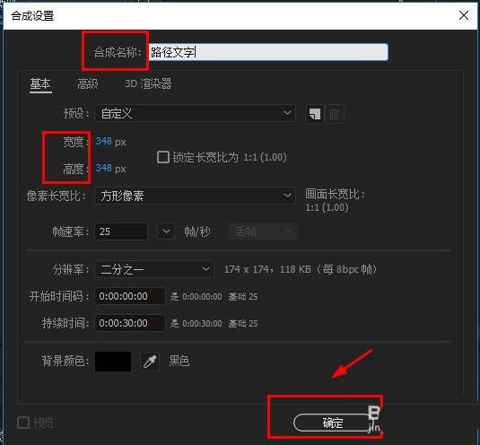 2、設置好寬高和幀速率,文件名等參數,點擊確定。