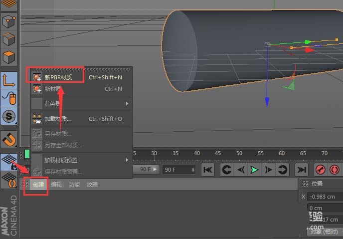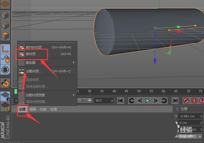 2、然后在下方的創(chuàng)建中,打開(kāi)新建材質(zhì)選項(xiàng)