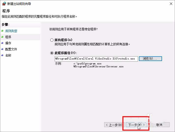 10、這樣就大功告成,這個時候就把會聲會影主程序添加到了防火墻出站規則里,這樣的話,會聲會影就不能聯網了。