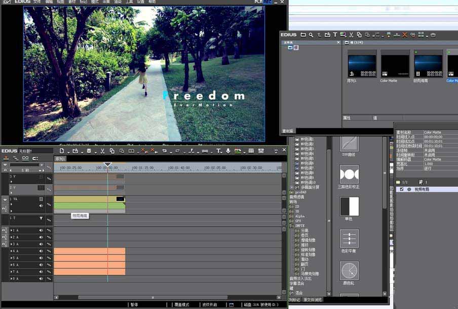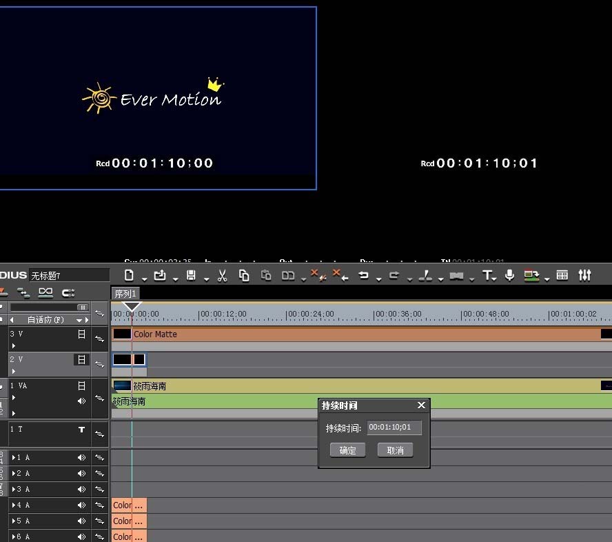 11、在色塊上右鍵點擊,選擇持續時間。在時間窗口內輸入 00011001 (就是一分十秒零一),對兩個色塊都是同樣的操作