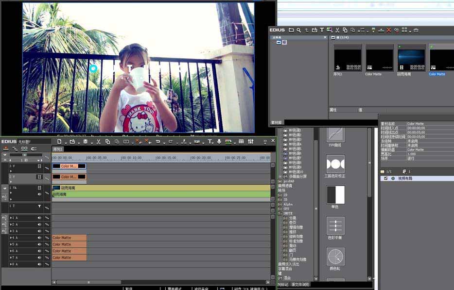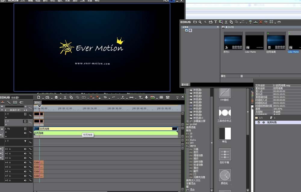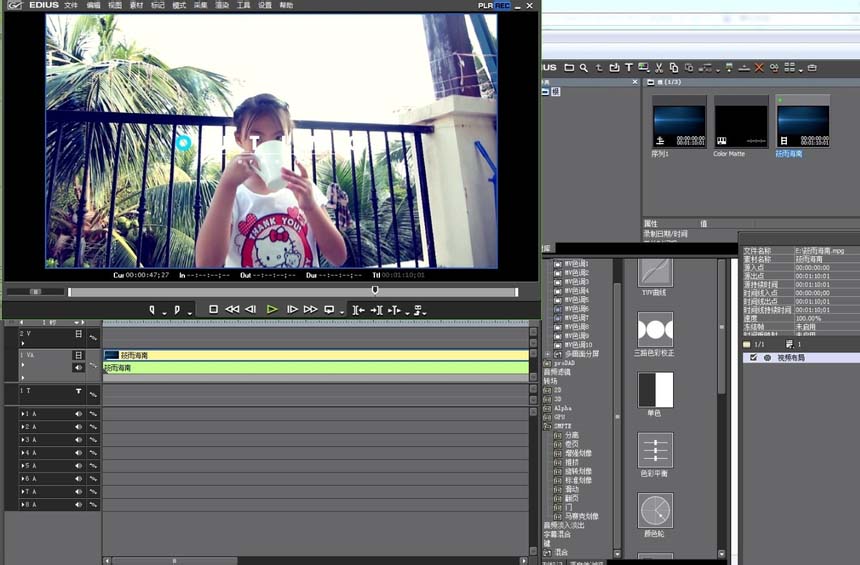10、接下來我們要把兩個色塊的時間改成和視頻素材一樣,通過觀察屬性,我們得知這個海南游的素材時間是一分十秒零一