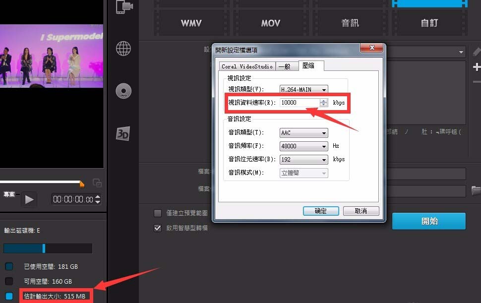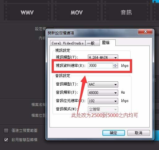 3、中間的:一般 一項默認,選擇最后一項:壓縮 找到視訊資料速率,默認10000。這時,我們改變速率為2500到5000之間均可,我選擇改成了3000速率,點擊確定后,我們看看大小,現(xiàn)在變成了100多M,是不是小了好幾倍啊?放心,制作出視頻后,畫面還是非常清晰,