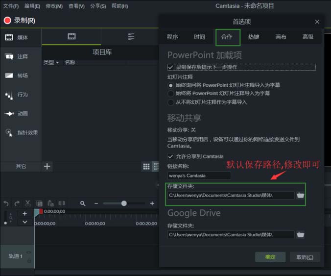 Camtasia studio 9.0在錄制視頻的時候默認為C:/Users/wenya/Documents/Camtasia Studio 路徑,需要修改路徑的朋友可以關注一下。